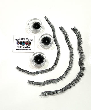Black eyelashes/ eyelash strips for felted animals and doll making with applicator tool
