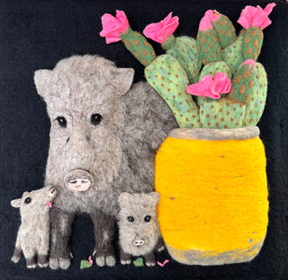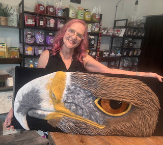 An accomplished, award winning Arabian equestrian, born and raised in Sarasota, Fl., Tracy's parents traveled allover the world filling their house with global treasures and art. Her great grandmother was also a fairly well known artist in Connecticut, so art was always a large part of Tracy's life. Tracy is a mother to a son and daughter-in-law and grandmother of two wonderful grand kids. Tracy had an exciting career in television for almost 45 years as a weather broadcaster, talk show host, news presenter, and commercial actor. Unfortunately, during a trip to Panama, Tracy was held hostage at gun point and was left suffering from PTSD. Luckily, Tracy found needle felting to be a wonderful form of therapy for her PTSD, and her journey towards renewal, and uses her art to heal her mind and soul. Tracy loves using The Felted Desert's Felt Fast colorful wool and we LOVE Tracy's art, and know that you will too. If you would like to hear more of her story you can check out her website at www.tracydouglass.com, or click the button below... Can you spot Cindy the cat in the pics below? She is Tracy's felting buddy and needed to be included in the photos... 🐈